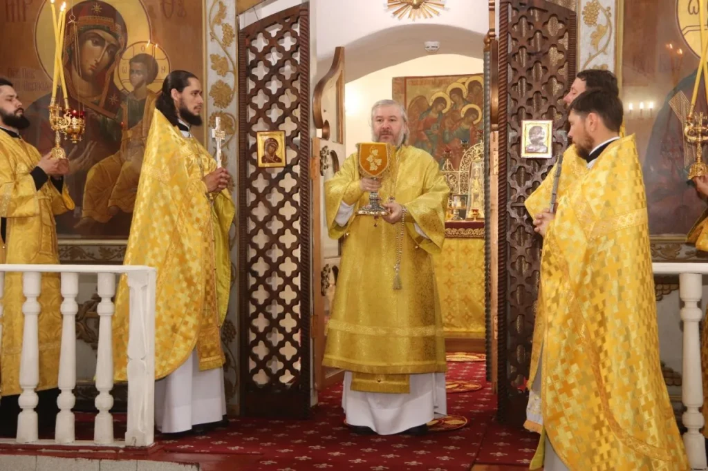 В этот день в церковь доставили особые святыни: икону преподобного Серафима Саровского с частицей его мощей, а также ковчеги с мощами других святых. Владыка Симон провёл вечернюю службу, а затем вместе с духовенством отправился к памятнику воинам, погибшим в Великой Отечественной войне. Там они помолились за упокой душ павших защитников Отечества. Песнопения во время богослужения исполнил объединённый хор священнослужителей Шахтинской епархии.