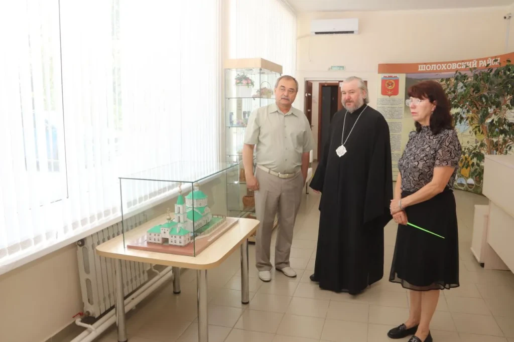 После службы владыка Симон, Олег Дельнов и благочинный отец Роман Митяшин отправились в Краеведческий музей Шолоховского района. Они осмотрели экспозиции, многие из которых находятся в стадии завершения. В ходе экскурсии они познакомились с уникальными экспонатами, рассказывающими о истории и культуре донского края.